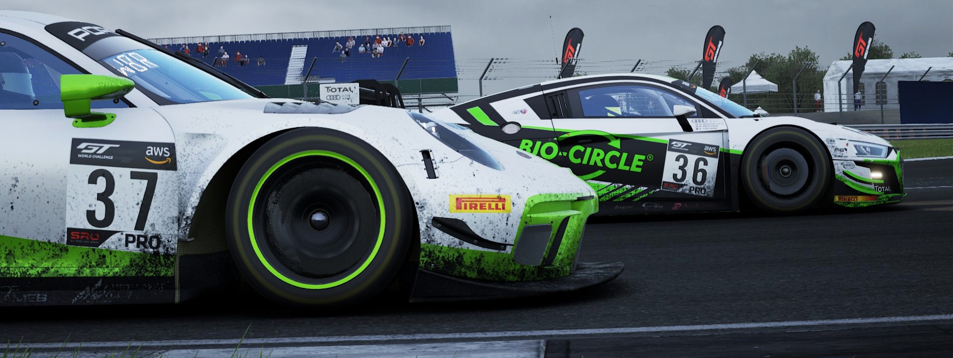 Nach einem blitzsauberen Start kam die Top 5 unverändert durch Copse, Maggotts und Becketts, während es weiter hinten im Feld genau dort schon die ersten Male krachte. Der WM Führende Filz konnte sich trotz kurzem Ausritt schnell auf P7 verbessern und schien die Verfolgung auf die Führungsgruppe aufnehmen zu wollen. Understrike setzte sich früh gegen Ruoff durch und erhöhte danach direkt den Druck auf Sedlak in P3. Dank der vielen Duelle quer durchs Feld blieben die Autos in der Anfangsphase nah beieinander.