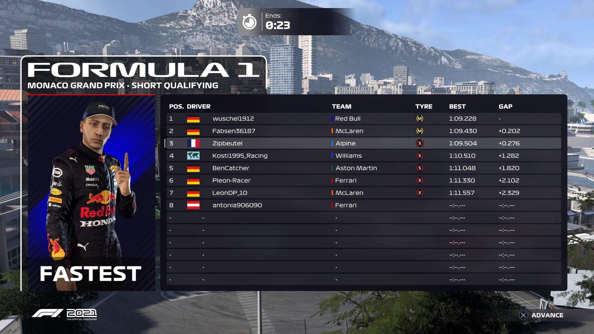 Qualifyingergebnis: Ergebnis (z.B. P8) und Rundenzeit (z.B. 1.22.564)
