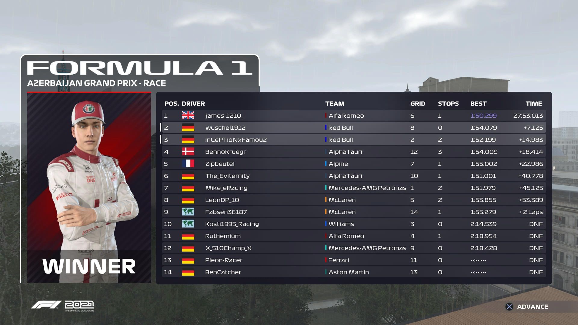 Rennen: Kurzer Text zum Rennen ( Vorfälle, besondere Überholmanöver, Gedanken zu Boxenstops, Undercuts usw.)