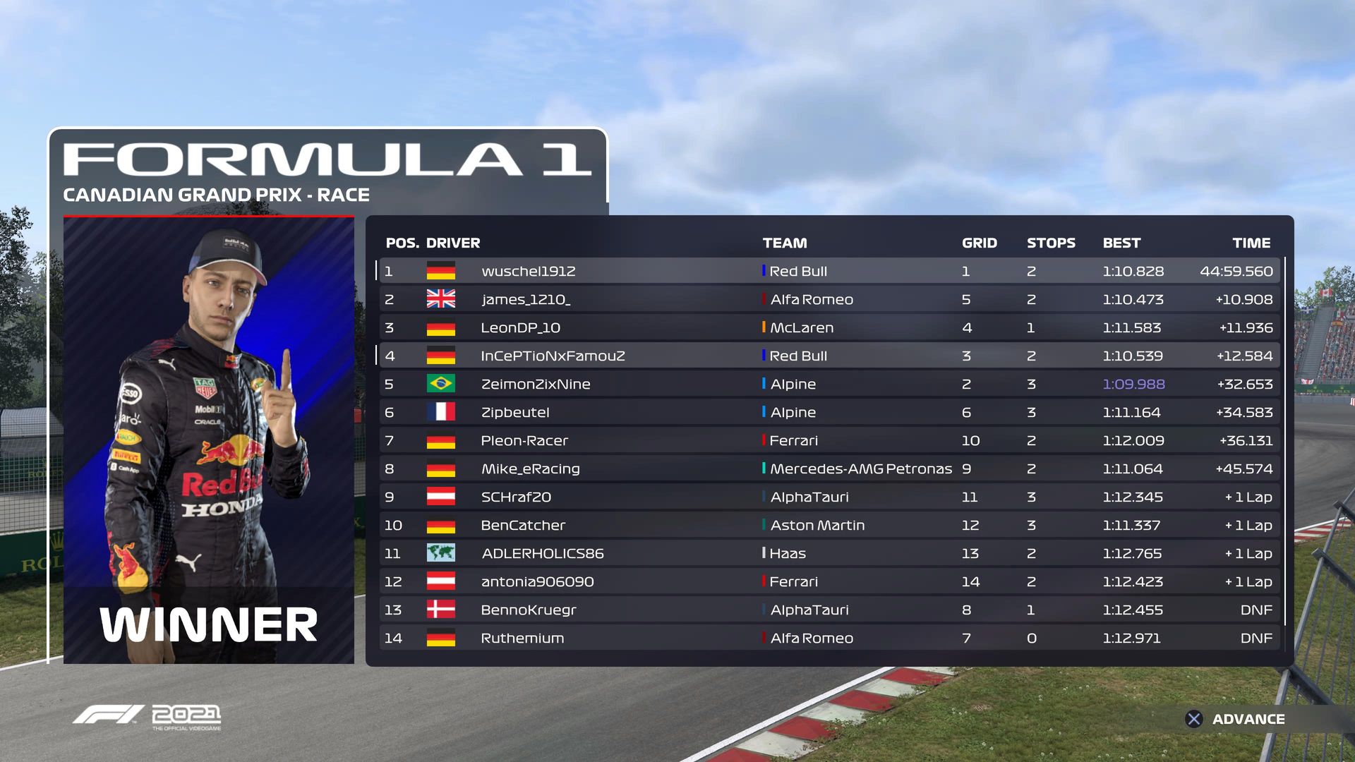 Fazit: Trotz eines schlechten Sprintrennen die Führung in der WM ausgebaut obwohl Kanada meine absolute Hassstrecke in der SimRC ist. Mein erstes Podium überhaupt hier seit 2018 xD