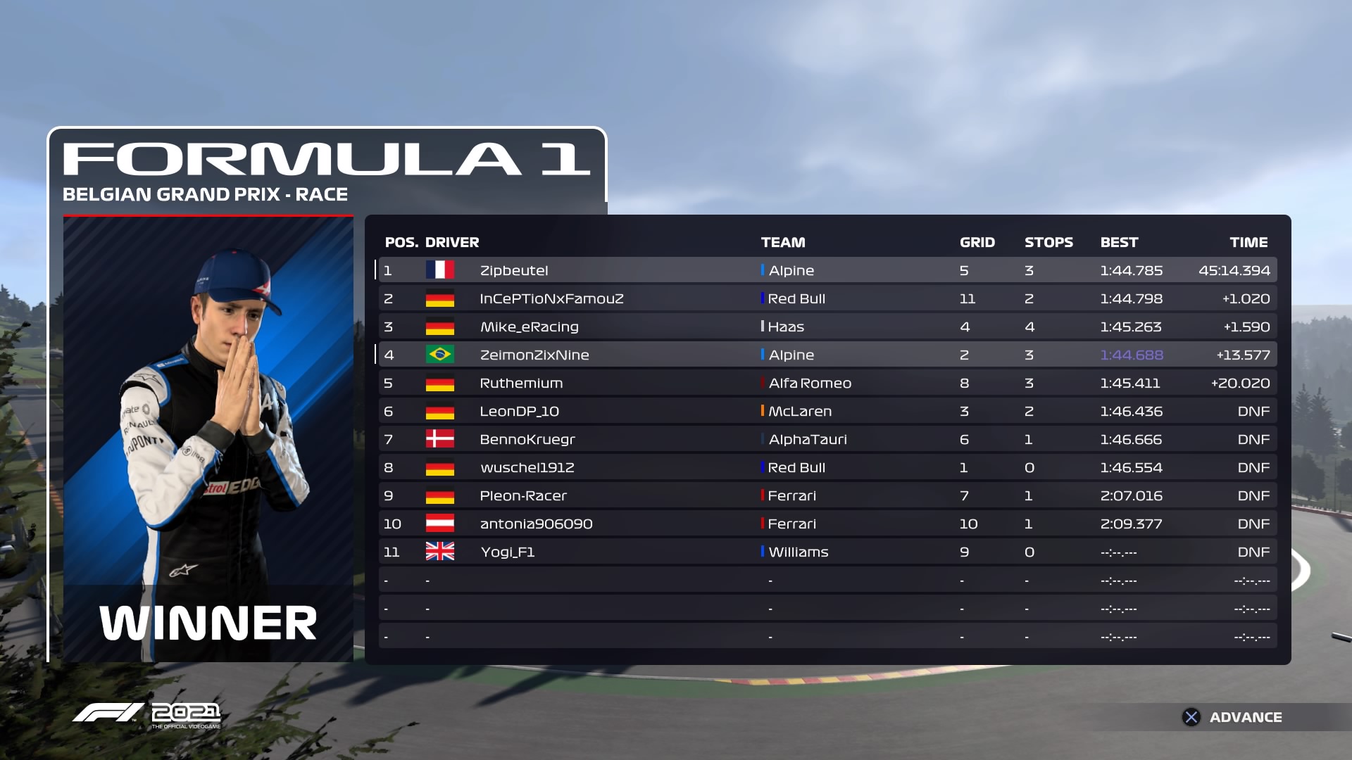 Nachdem ich dann von allen überholt worden bin,konnte ich erstmal alleine meine Runden fahren!Nach meinem Boxenstopp in R7 habe ich in den letzten 2 Runden SEHR KRASS zu