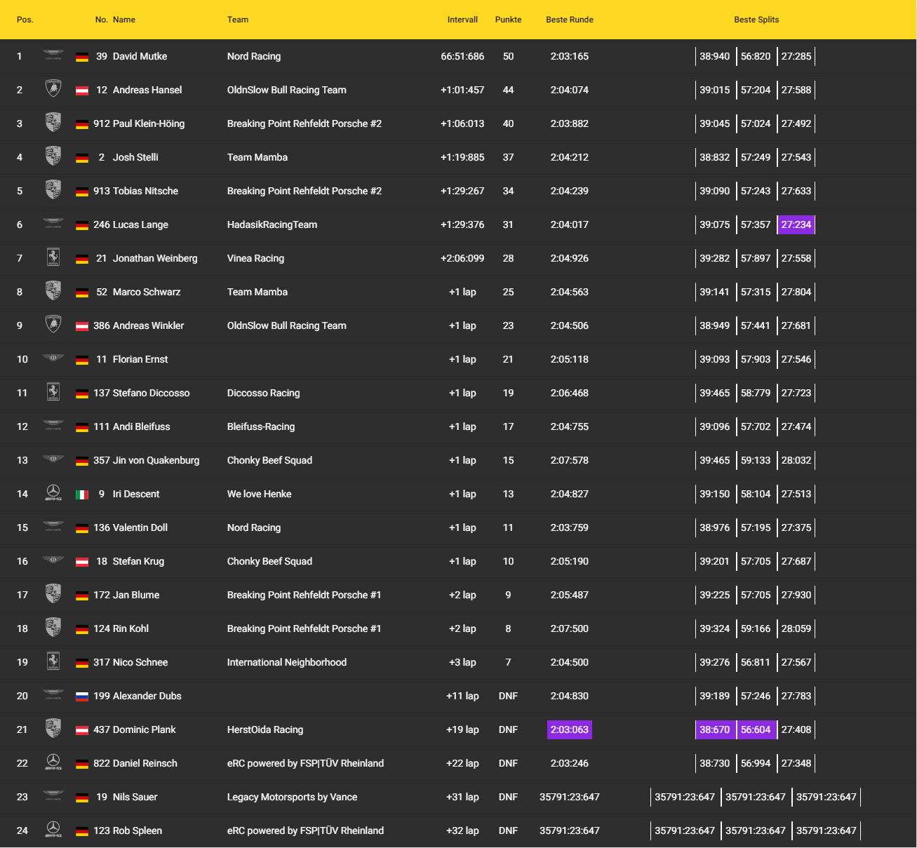 Die Ligaleitung steht für Fragen unserer Neuen im entsprechenden TS-Channel bereit.ca. 17:00 Uhr Qualifikation (20 Minuten Q. -zeit + 5 Minuten Pause nach dem Q.) ca. 17:25 Uhr Rennen (65 Minuten Rennzeit + 5 Minuten Einführungs- und Abschlussrunde) ca. 18:30 Uhr Sieger-Interviews Es wird empfohlen sich das Regelwerk und den Strafenkatalog gründlich durchzulesen!