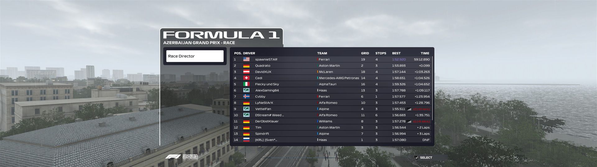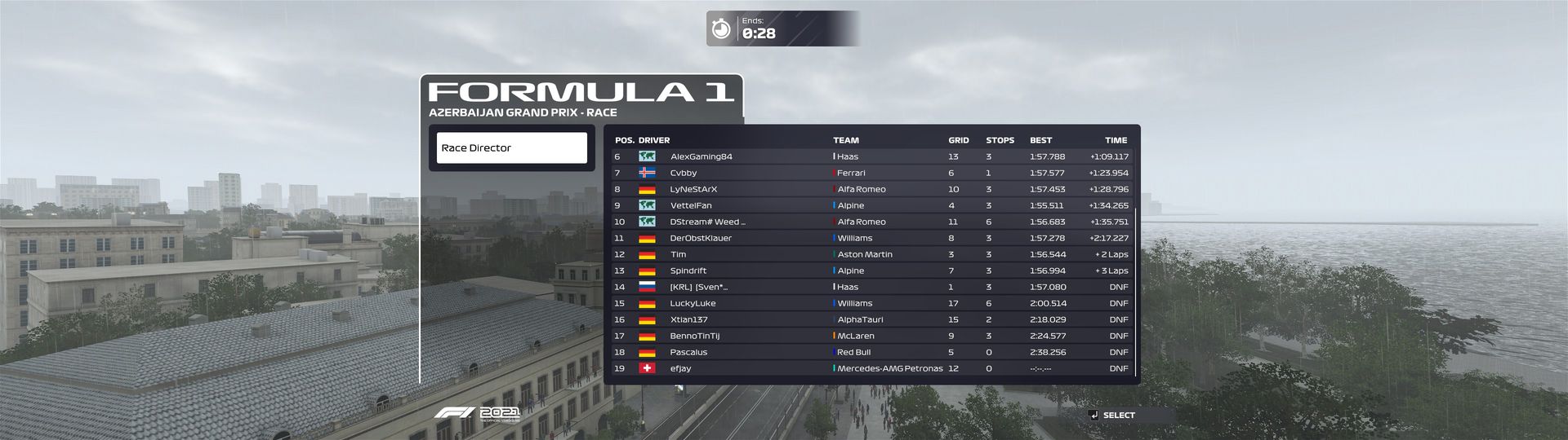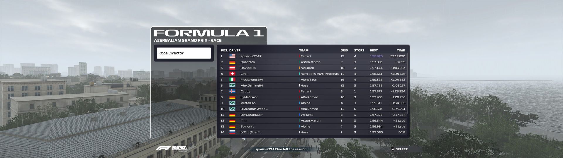 . Glückwünsche gehen raus! Reifenwahl war nicht einfach. Es gab eine Phase da haben die Inters nicht gut gearbeitet und ständig blockiert. Dann auf Wets gegangen, die waren aber zu langsam.... Dann zurück auf Inters.
