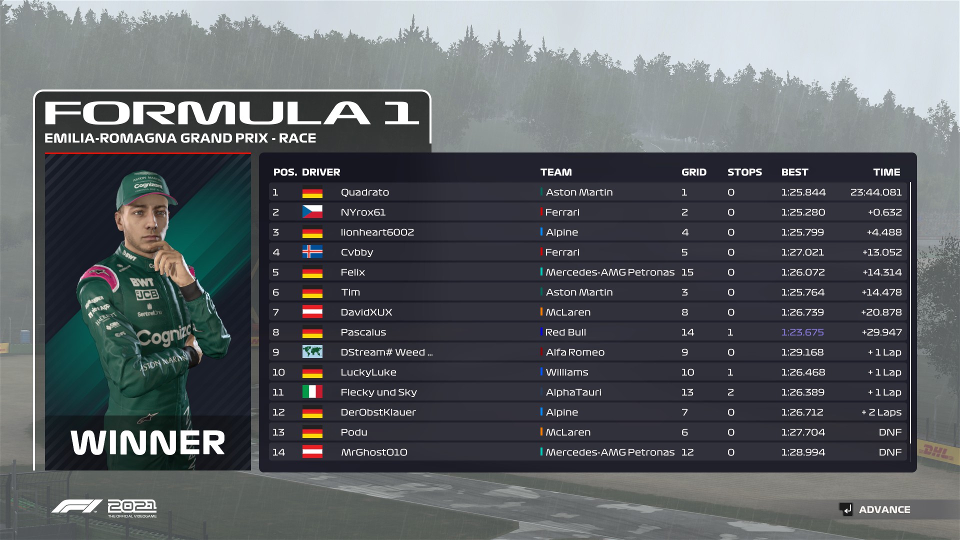 Rennen: Kurzer Text zum Rennen (Vorfälle, besondere Überholmanöver, Gedanken zu Boxenstopps, Strategien usw.)
