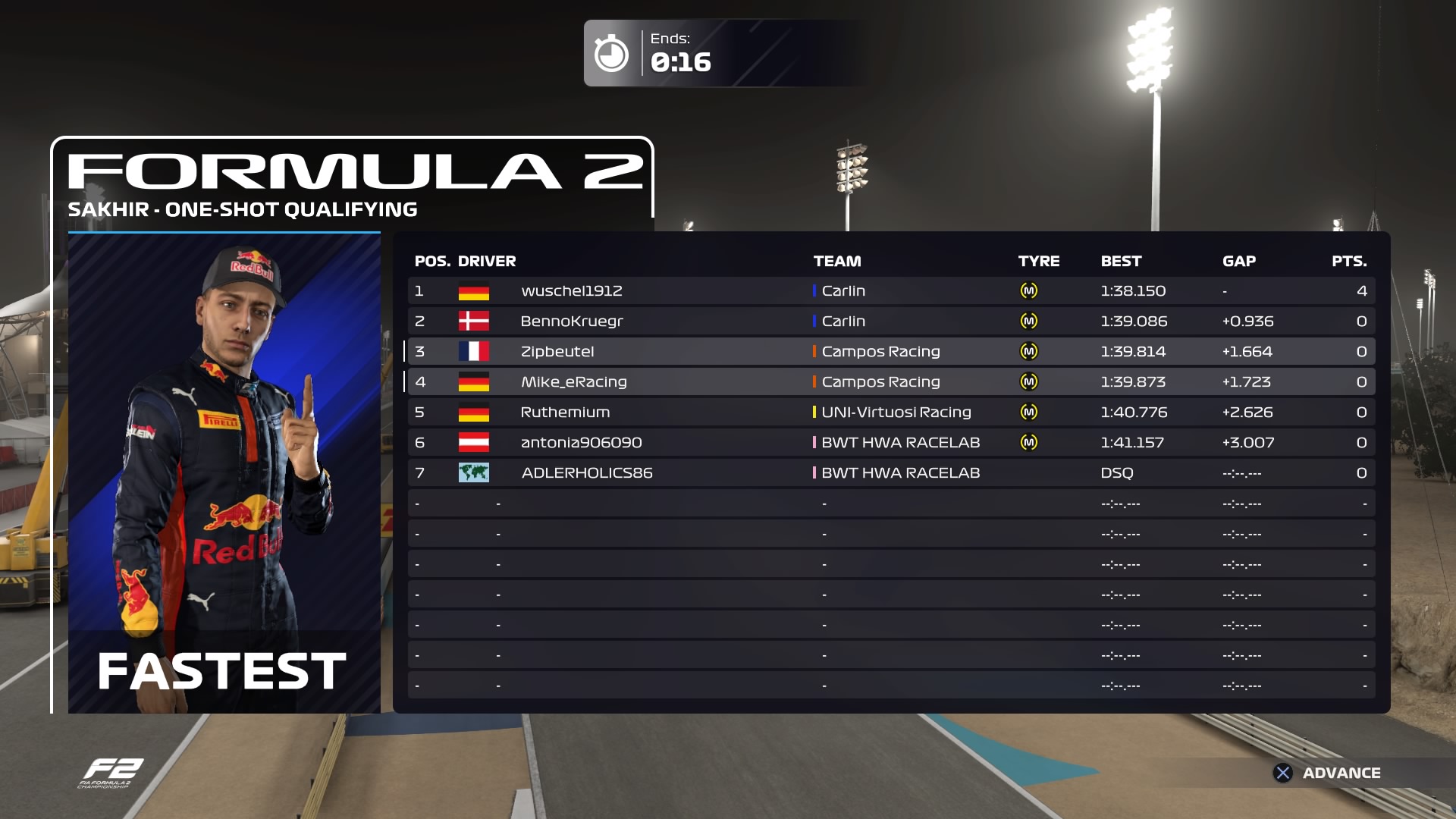 Falschen Knopf gedrückt und dadurch anstatt Setup zu Laden die Quali gestartet