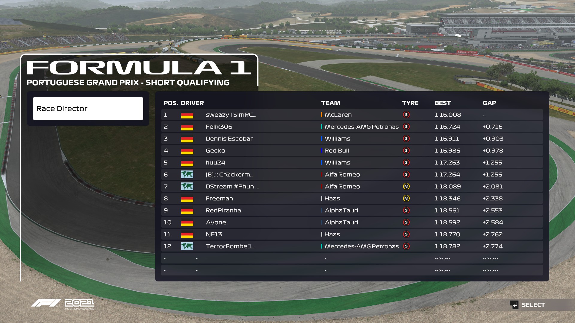 Qualifying: Am Anfang zwei Runden auf den Softs gefahren, die zweite Runde war trotz sehr wenig ERS recht gut. In der letzten Runde auf den frischen Softs wurde ich blockiert, jedoch hätte ich mich vermutlich eh nicht mehr verbessert.