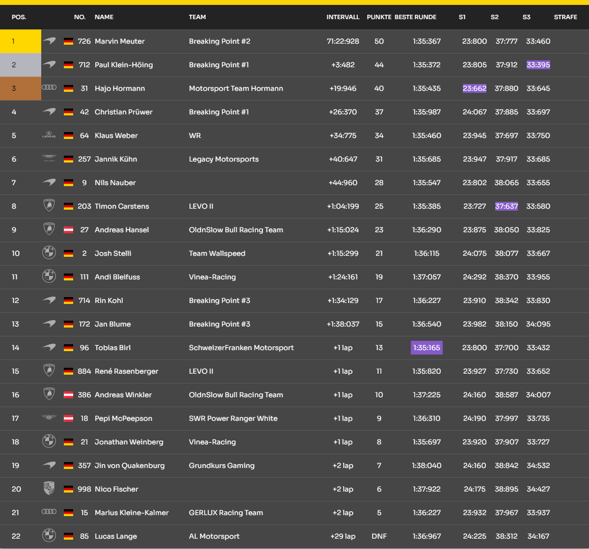 Rennen (inkl. Strafen R6 Paul-Ricard, exkl. Strafen R7 Misano)