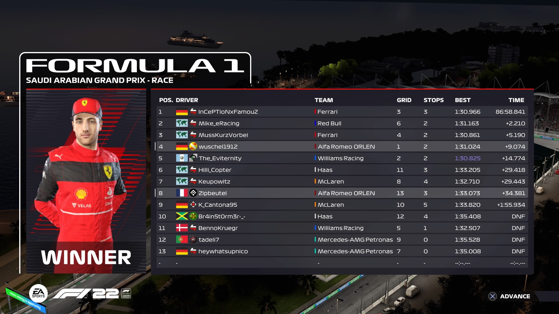 Rennen: Kurzer Text zum Rennen ( Vorfälle, besondere Überholmanöver, Gedanken zu Boxenstopps, Undercuts usw.)