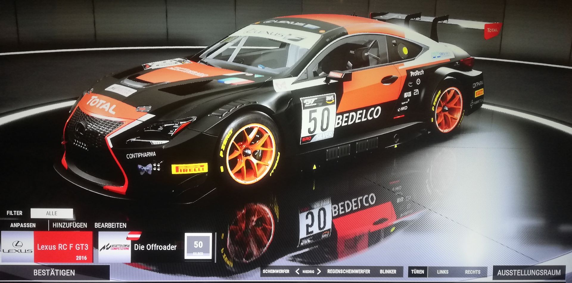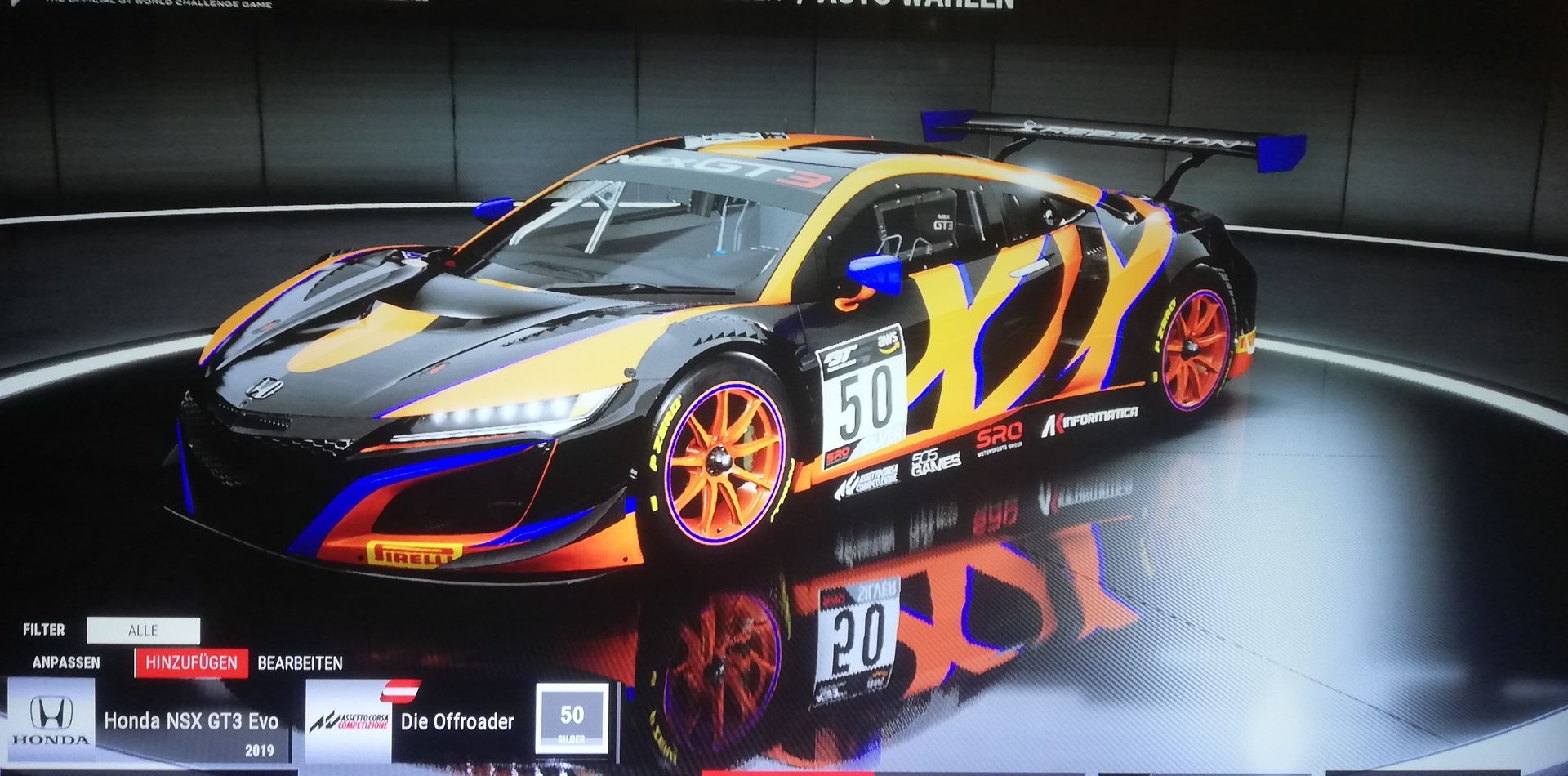 und dann darunter ein Screenshot von eurem Wagen/Lackierung.