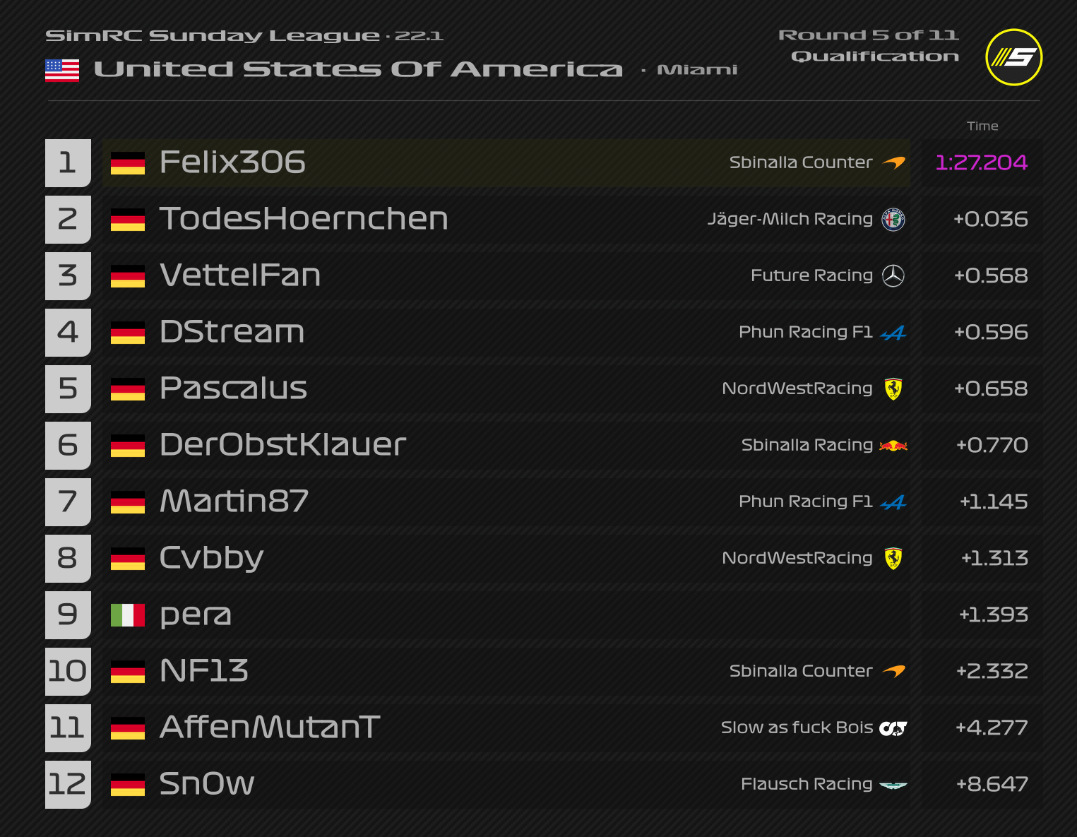 Qualifyingergebnis: Ergebnis (z.B. P8) und Rundenzeit (z.B. 1.22.564)