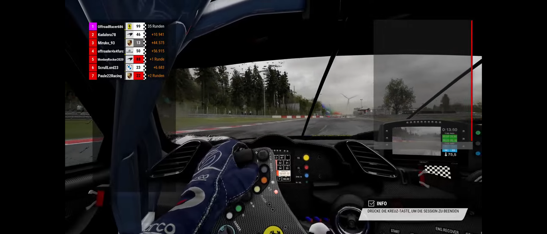 Rennergebnis: Endplatzierung im Rennen (z.B. P5)