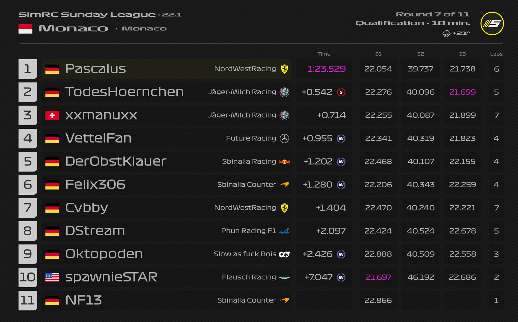 ZitatAlles anzeigenQualifyingergebnis: