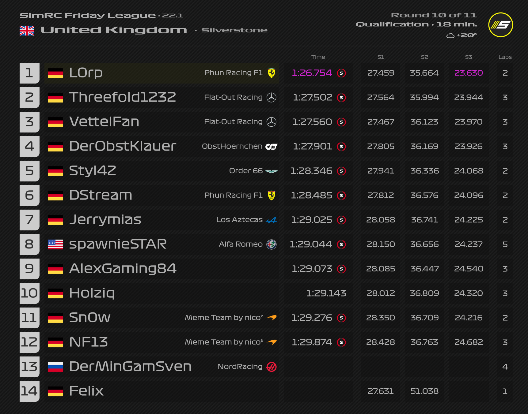 ZitatAlles anzeigenQualifyingergebnis: