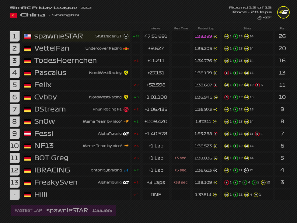 Fazit: Gutes Rennen und mehr führungs Runden gehabt als in der ganzen Saison :thumbsup: :thumbsup: