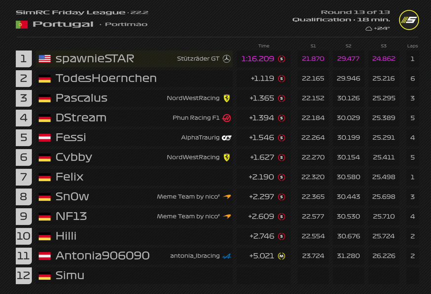 ZitatAlles anzeigenQualifyingergebnis: