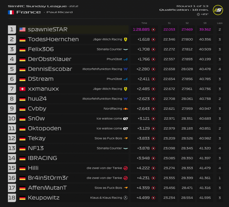 ZitatAlles anzeigenQualifyingergebnis: