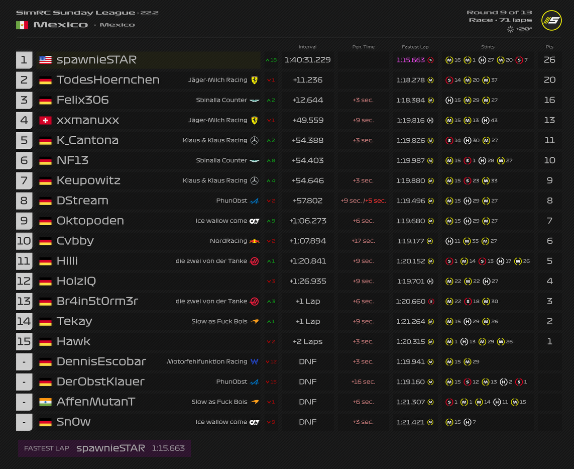 Rennen: Kurzer Text zum Rennen (Vorfälle, besondere Überholmanöver, Gedanken zu Boxenstopps, Strategien usw.)