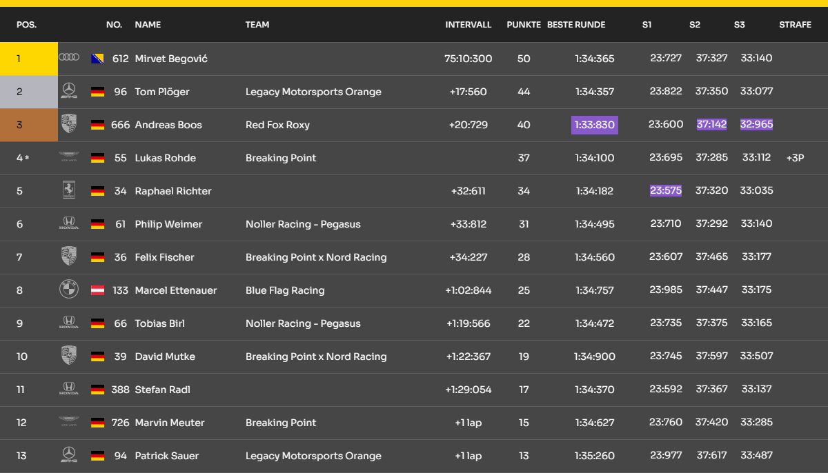 Die Ligaleitung steht für Fragen unserer Neuen im entsprechenden TS-Channel bereit.ca. 18:00 Uhr Qualifikation Pro-Am (15 Minuten Q. -zeit ) ca. 18:15 Uhr Qualifikation Pro (15 Minuten Q. -zeit + 3 Minuten Pause nach dem Q.) ca. 18:35 Uhr Rennen (75 Minuten Rennzeit + 3 Minuten Einführungs- und Abschlussrunde) ca. 20:00 Uhr Sieger-Interviews Es wird empfohlen sich das Regelwerk und den Strafenkatalog gründlich durchzulesen!