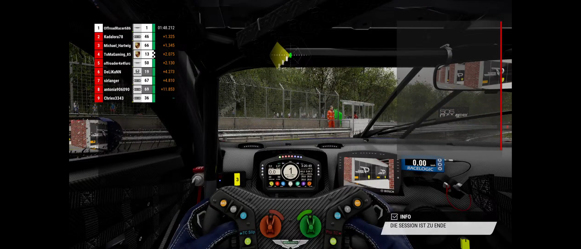 Fazit: sehr schwierige Bedingungen, aber es war glaub ich das erste Liga Rennen, in welchem es nicht einen einzigen Kontakt zwischen allen Teilnehmern gab. ?(
