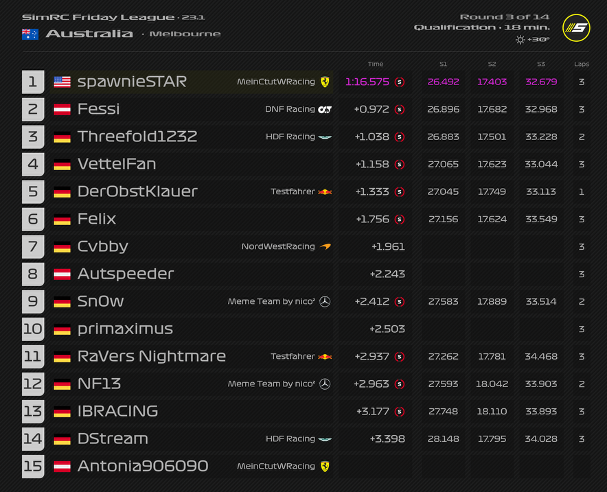 ZitatAlles anzeigenQualifyingergebnis: