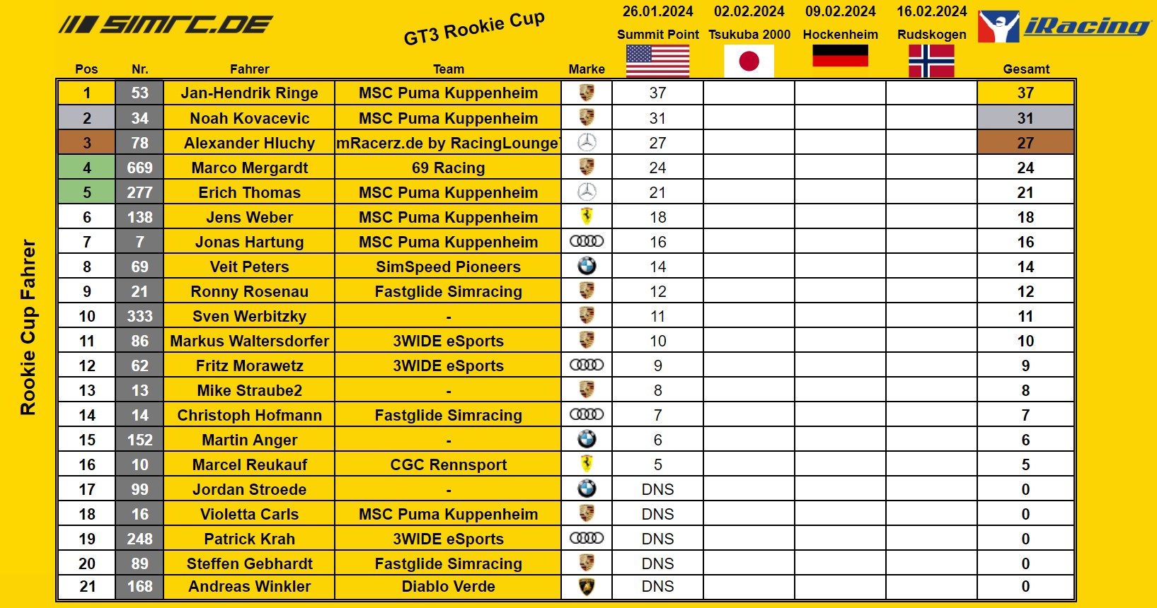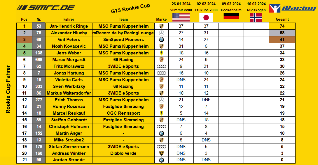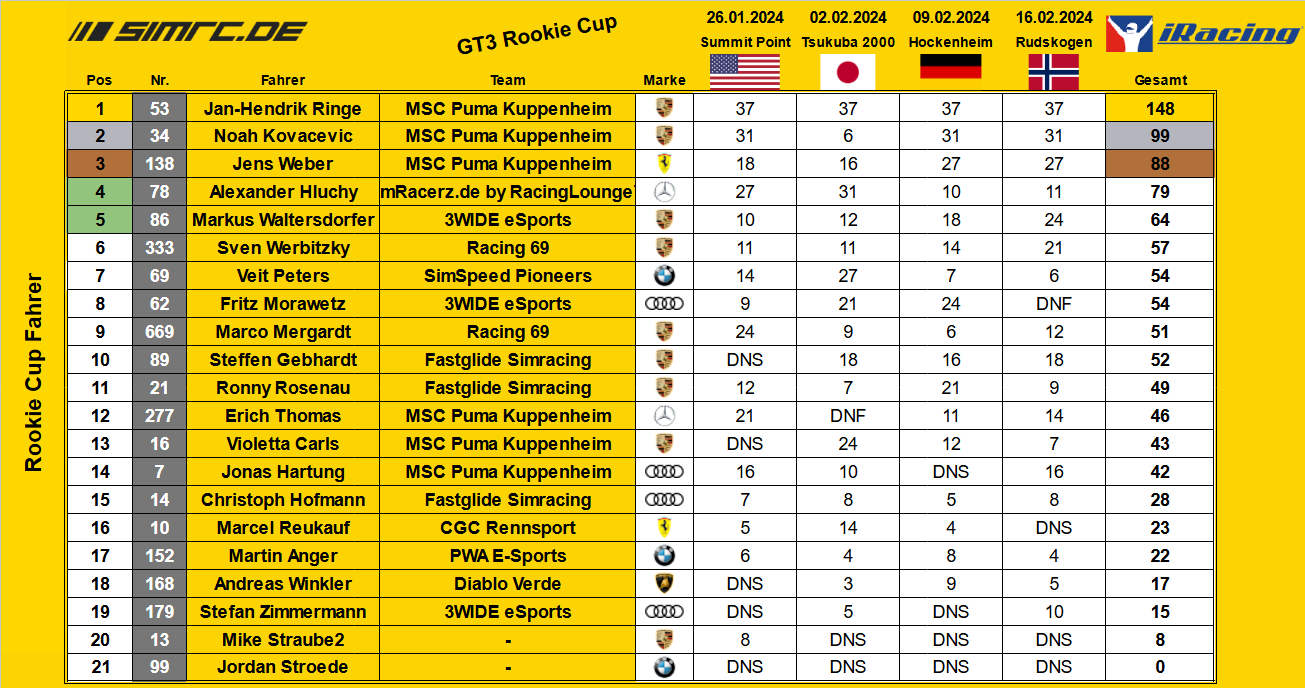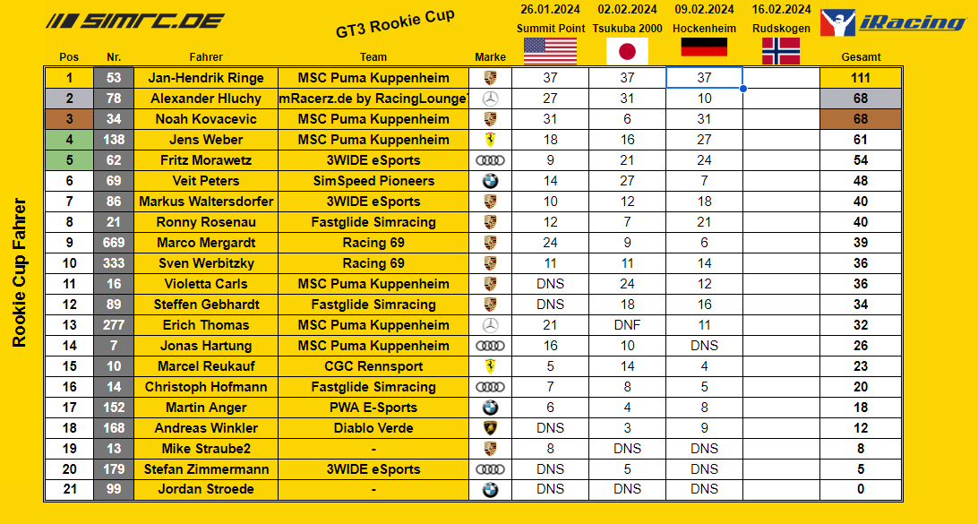 Rookie Cup - Meisterschaftsstand