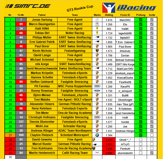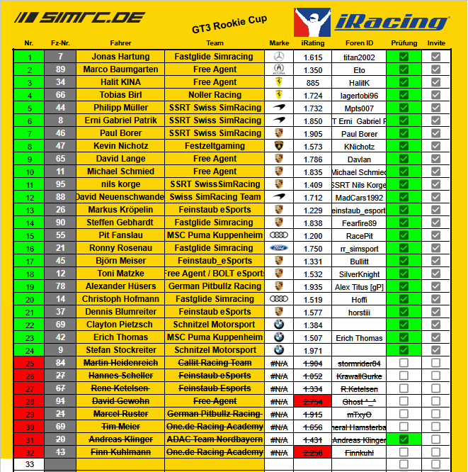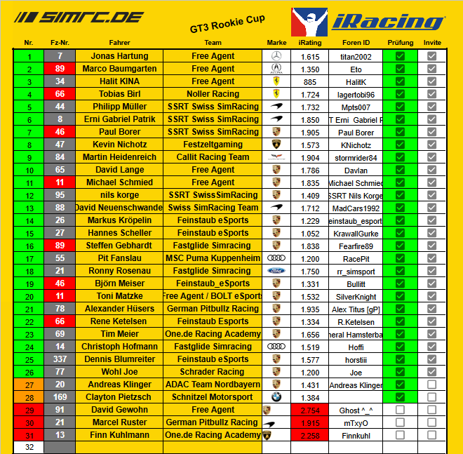 Rookie Cup - Fahrerfeld