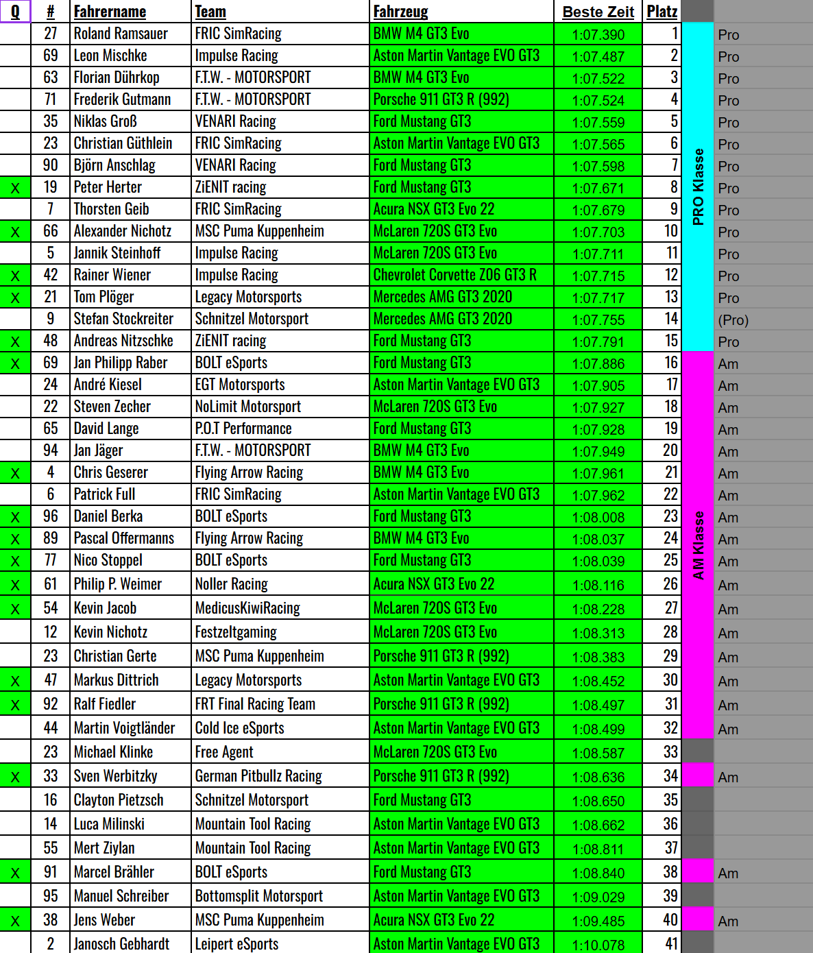 Da wir durch die neue Regelung zur Klassenaufteilung deutlich mehr Fahrer in der Qualifikation haben, erwarten wir ein erhöhtes Potential an Sandbagging versuchen. Daher sind alle Fahrer verpflichtet uns VRS oder Garage61 Telemetriedaten zu jeder Zeit während oder nach einem Qualifkationsevent zur Verfügung zu stellen. Wenn dieser Aufforderung nicht nachgekommen wird, werden wir die entsprechenden Fahrer von der Teilnahme an der Saison ausschließen!