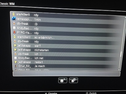 Also, irgendjemand hat das Rennen gestartet, bevor alle "rdy" geschrieben haben. Dann schrieb Jelli, nachdem der Countdown zum Rennen schon lief, "nichstarten" und "restart".