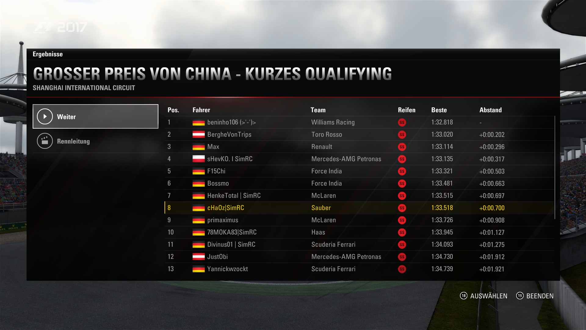 ZitatAlles anzeigenQualifyingergebnis: