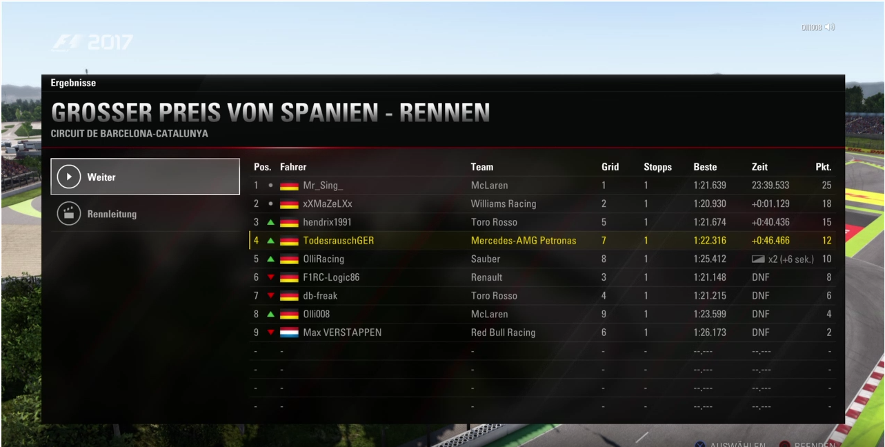 [F1 Liga PS4] 2.Lauf Mini WM 2017 Spanien Rennberichte