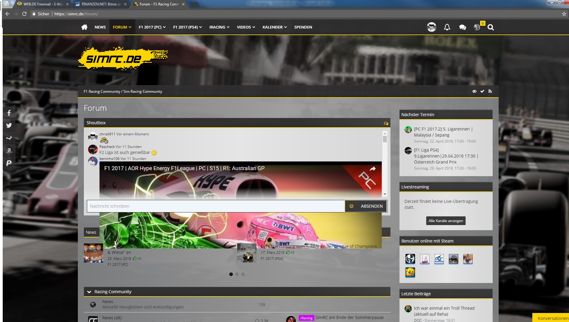 Naja um ein Problem zu lösen brauche ich halt möglichst alle relevanten Infos um das Problem vielleicht selbst nachstellen zu können. Das kann ich derzeit nicht aber ich bin meist auch viel im Forum unterwegs und daher lädt meine SB ehe immer neu. Ich konnte es nur vorhin in einem Test mit 2 Browsern nicht nachvollziehen.