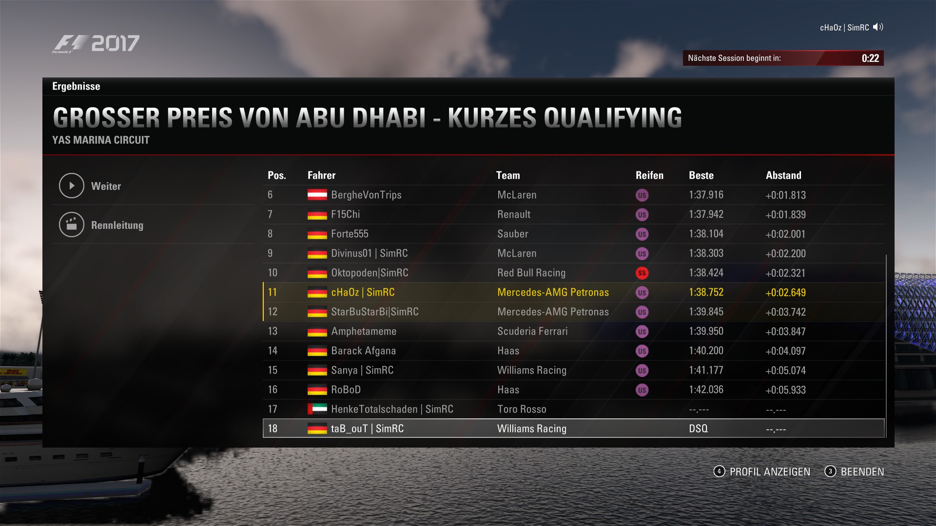 ZitatAlles anzeigenQualifyingergebnis: