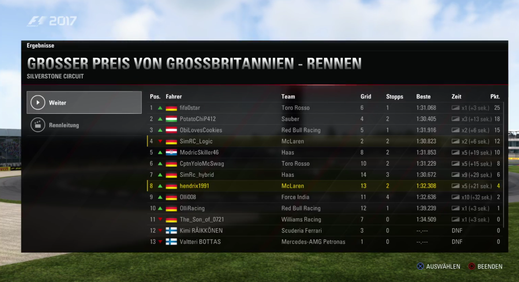 Rennen: Kurzer Text zum Rennen (Vorfälle, besondere Überholmanöver, Gedanken zu Boxenstopps, Undercuts usw.)
