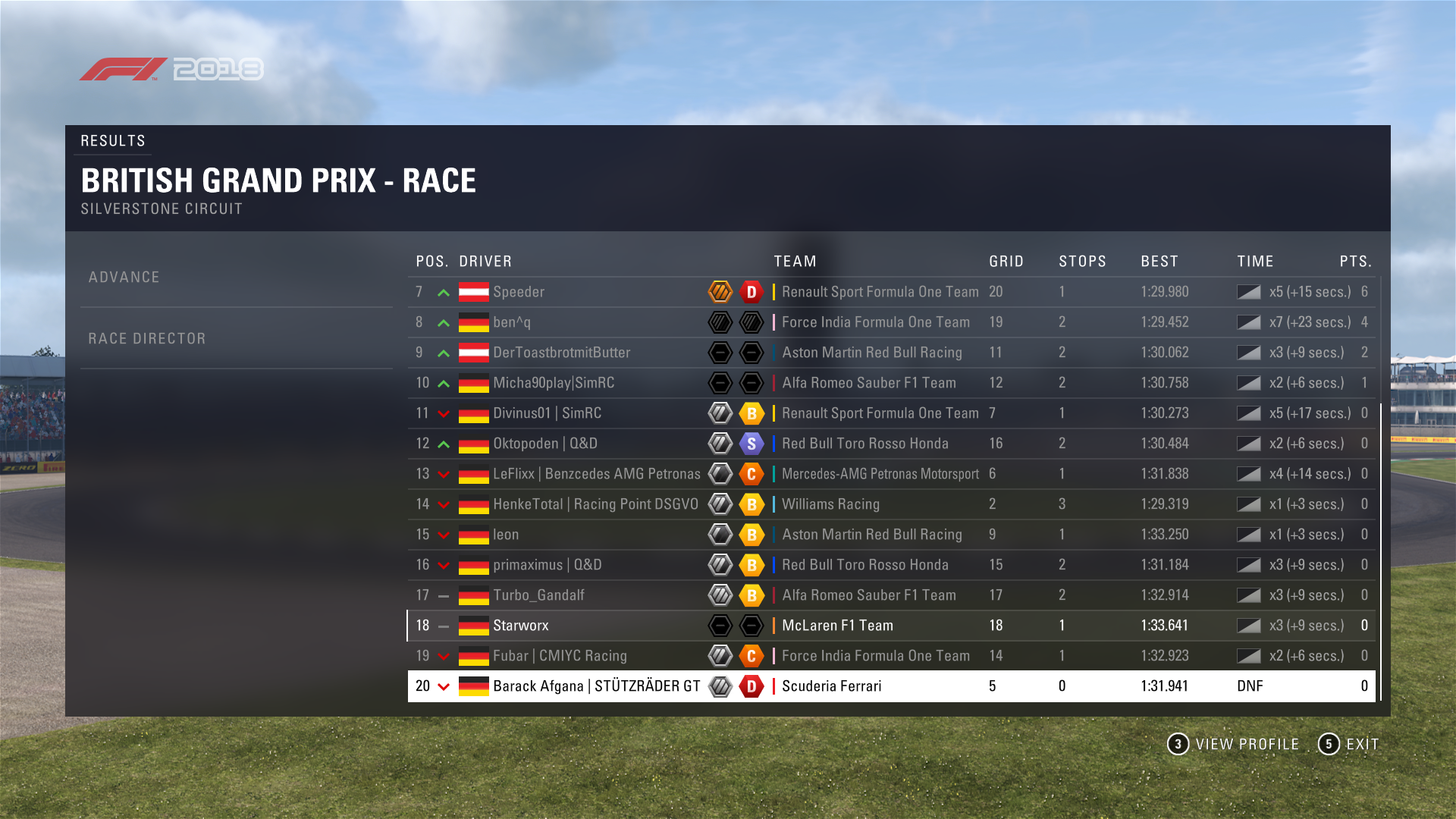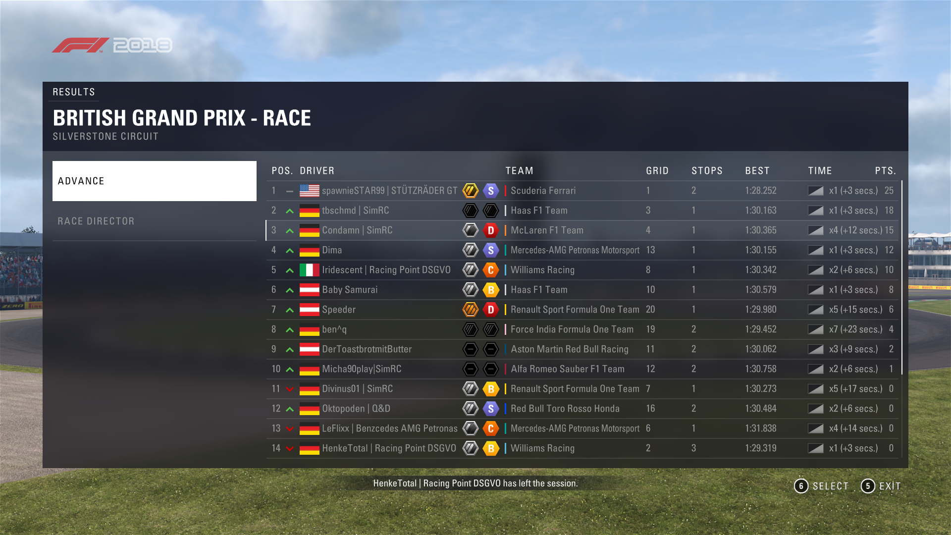 Rennen: Kurzer Text zum Rennen (Vorfälle, besondere Überholmanöver, Gedanken zu Boxenstopps, Undercuts usw.)