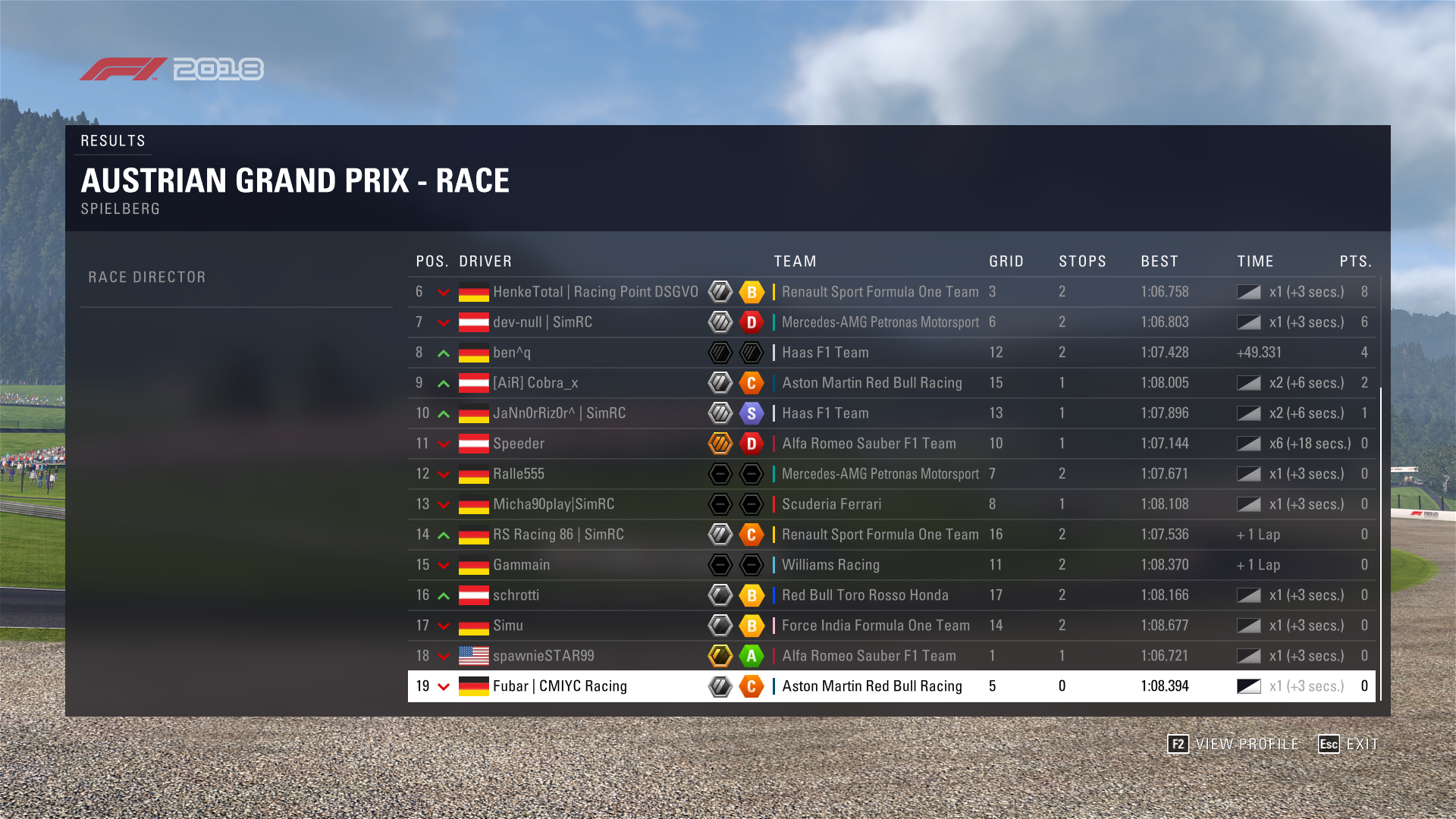 Rennen: Kurzer Text zum Rennen (Vorfälle, besondere Überholmanöver, Gedanken zu Boxenstopps, Undercuts usw.)