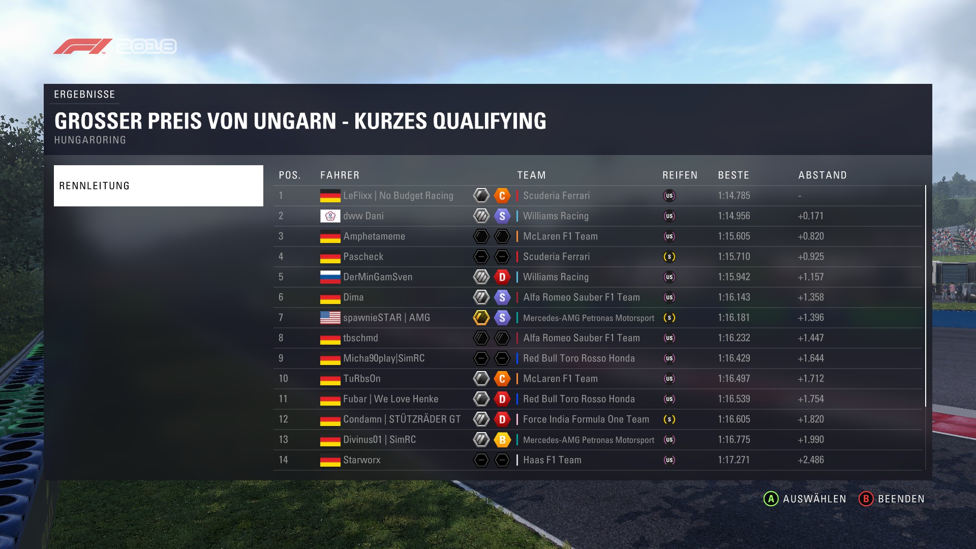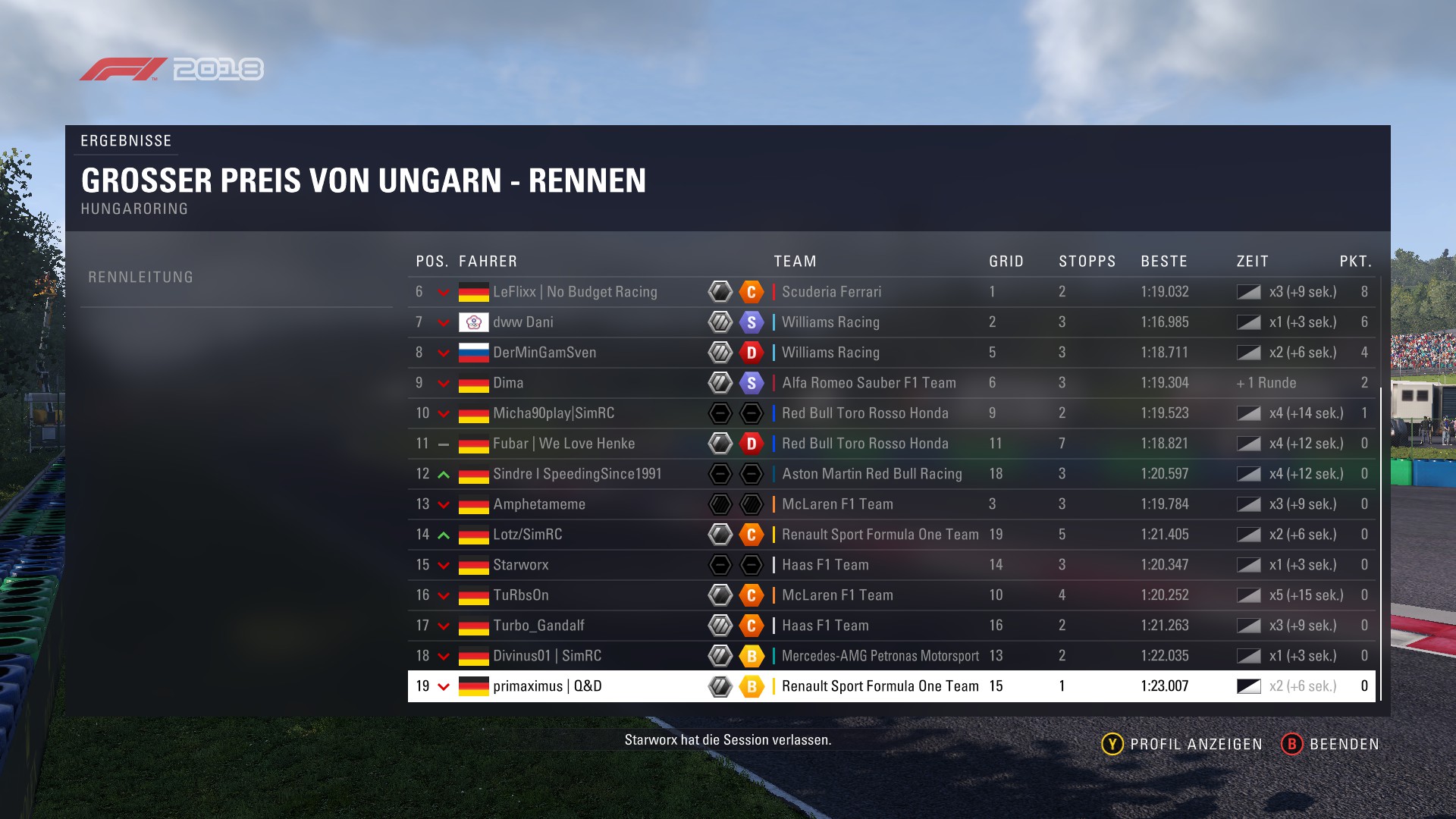 [PC F1 18.2-Sunday] 1. Ligarennen | Ungarn | Rennberichte