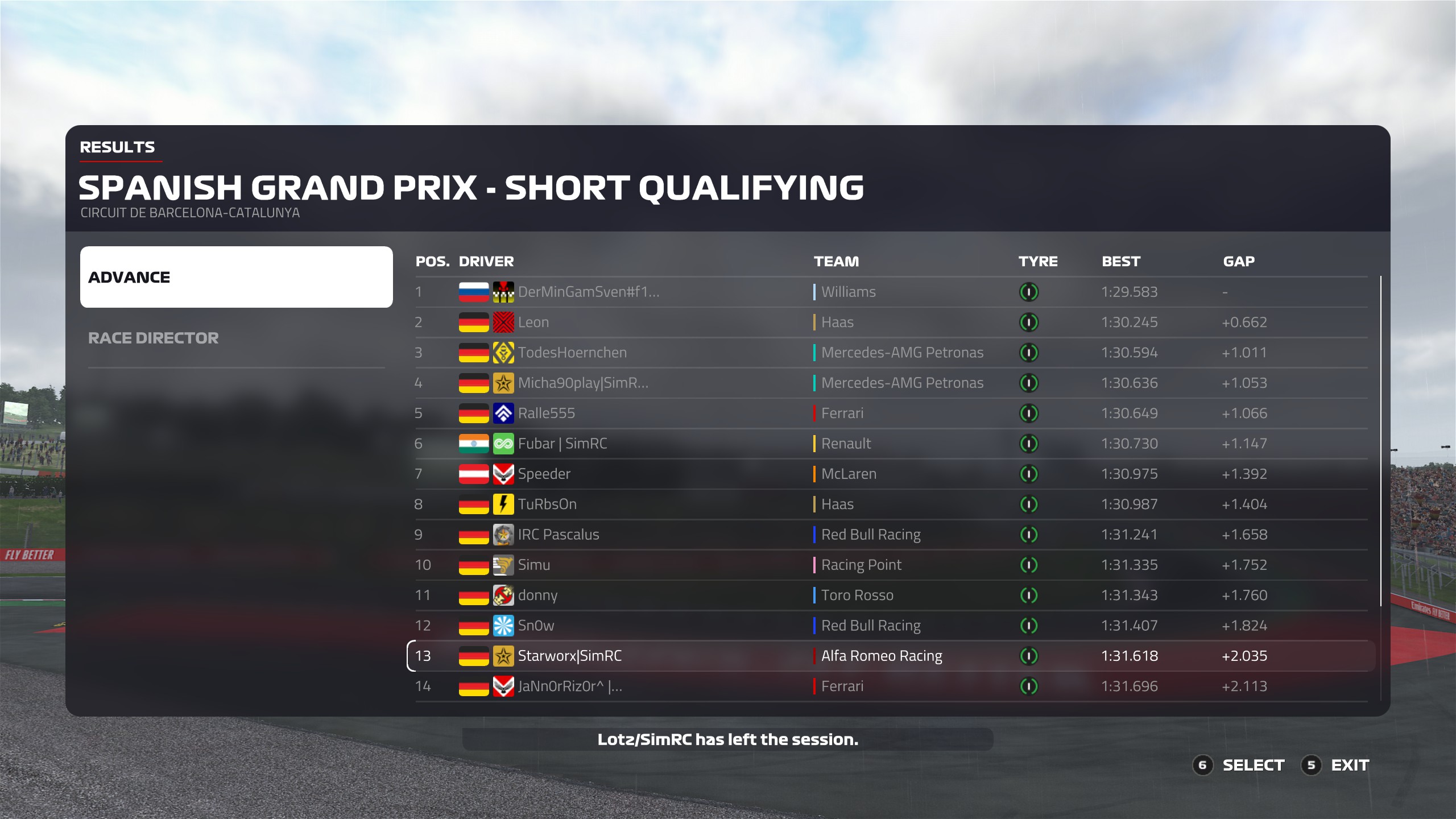 Qualifying: Runde war ok, hätte aber nochmal ne halbe sekunde bis sekunde drauflegen können, hab aber im finalen Run direkt in Kurve 2 abgekürzt :facepalm: