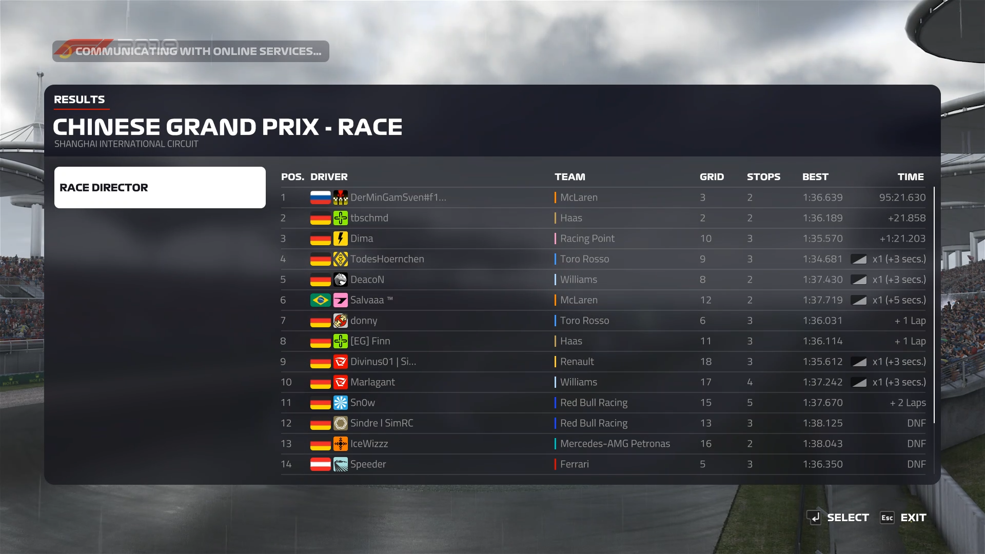 Rennen: Kurzer Text zum Rennen (Vorfälle, besondere Überholmanöver, Gedanken zu Boxenstopps, Undercuts usw.)