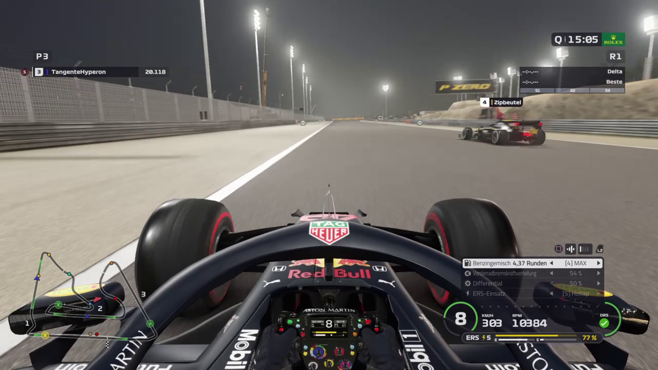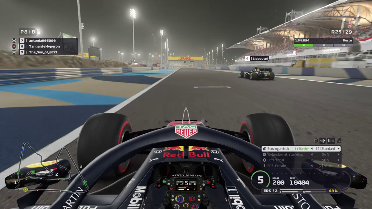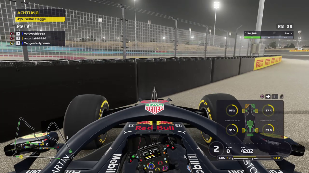 Ich drehte mich zudem so blöd weg, dass ich knapp vor der Wand zu stehen kam, musste also erst einmal wenden. Mein Dashboard zeigte mir nach Sektor 1 knapp 22sec Rückstand auf die Spitze an, das war kein schöner Anblick und das Rennen abgehackt. Habe dann diese erste Runde dazu verwendet den linken Hinterreifen wieder ins Fenster zu kriegen und ab dann gab es eigentlich nur noch volle Pulle. Wollte das Setup noch etwas testen, da ich es noch benötigen werde und daher gab es kein Zurückhalten. In Runde 10, als ich auf