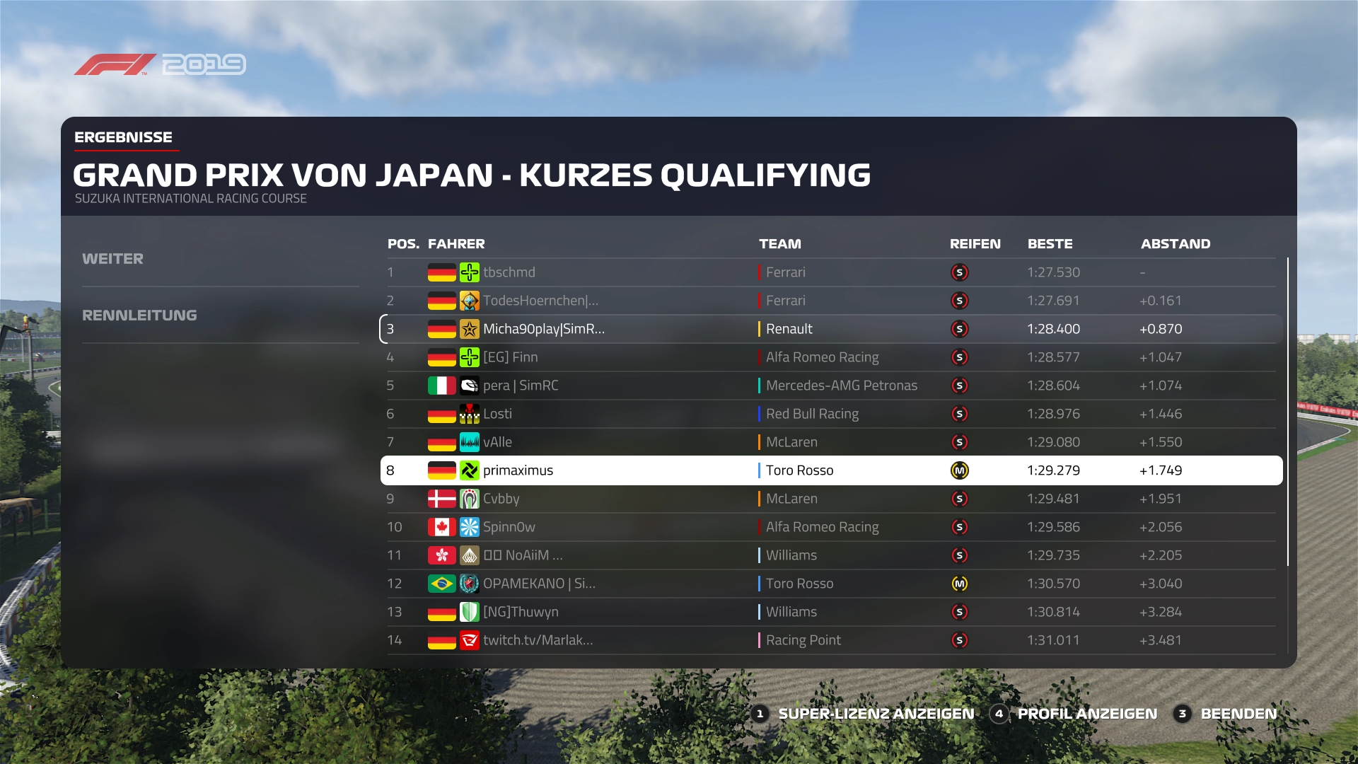 ZitatAlles anzeigenQualifyingergebnis:
