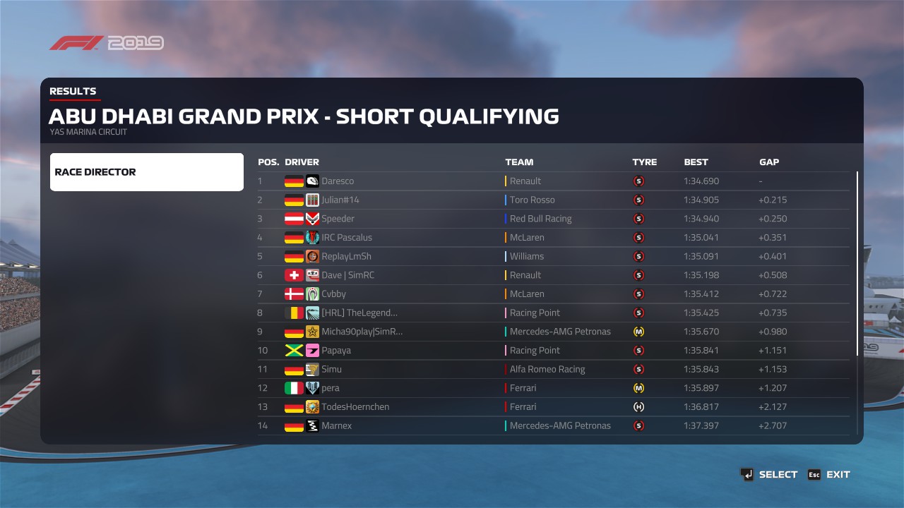 ZitatAlles anzeigenQualifyingergebnis: