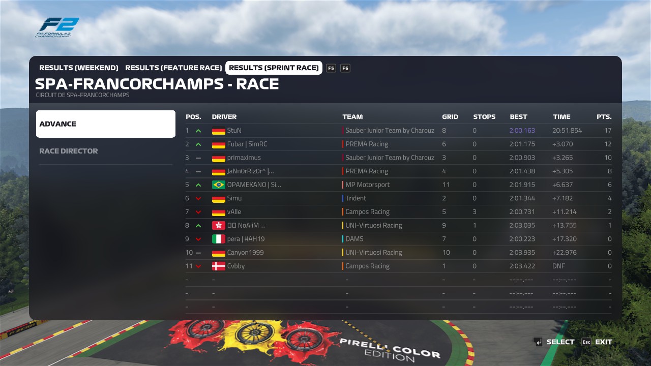 Sprintrennen: Kurzer Text zum Rennen (Vorfälle, besondere Überholmanöver usw.)