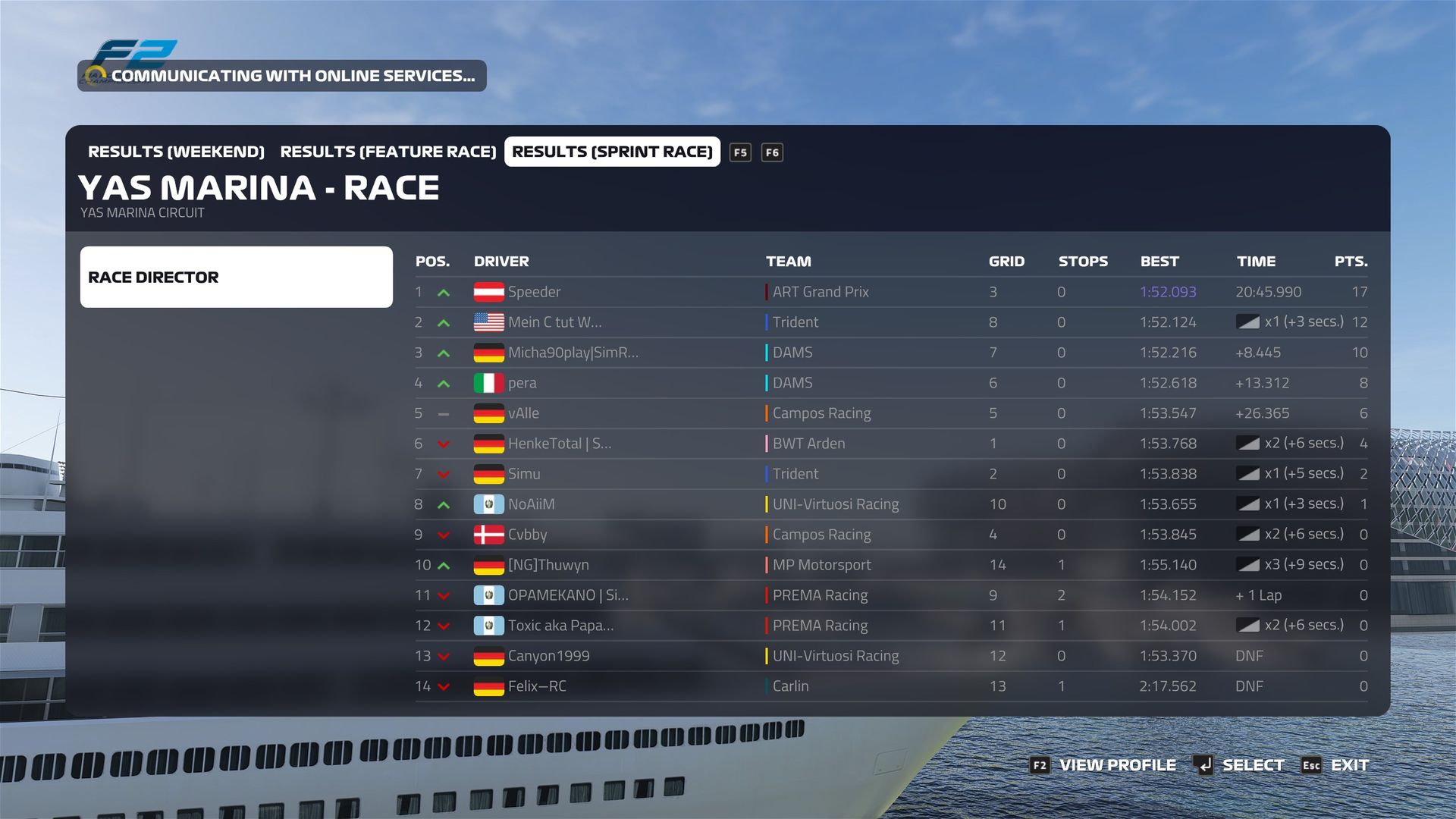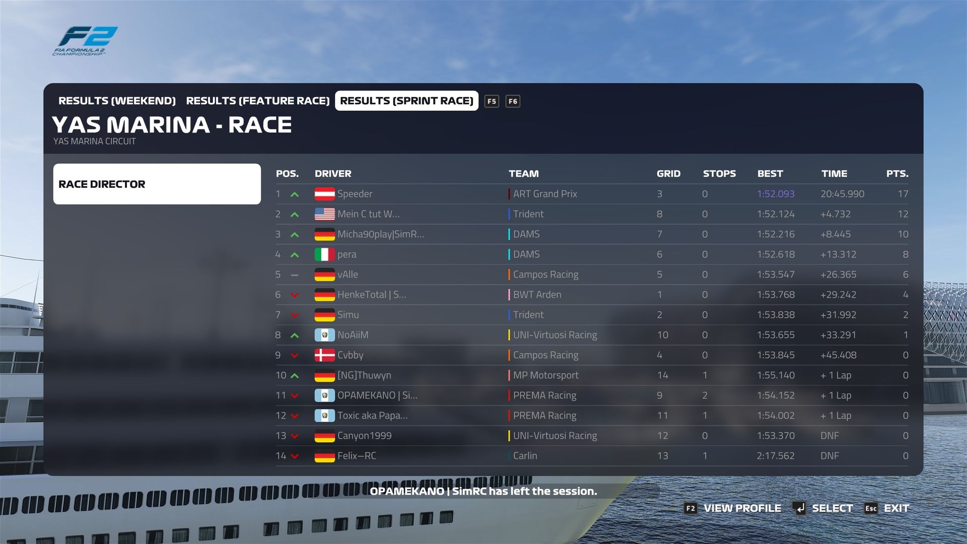 Sprintrennen: Kurzer Text zum Rennen (Vorfälle, besondere Überholmanöver usw.)