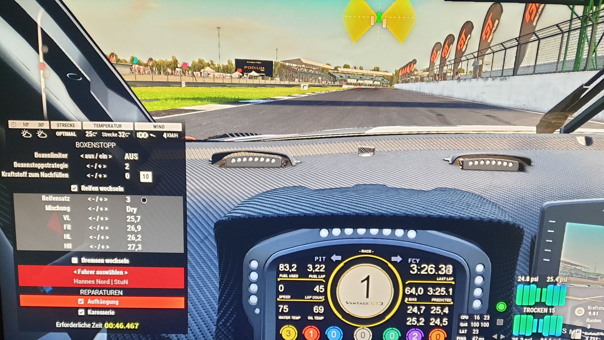 Zeitpunkt vom Boxenstopp: Runde oder Zeitangabe (R18) oder ( in Minute 25)