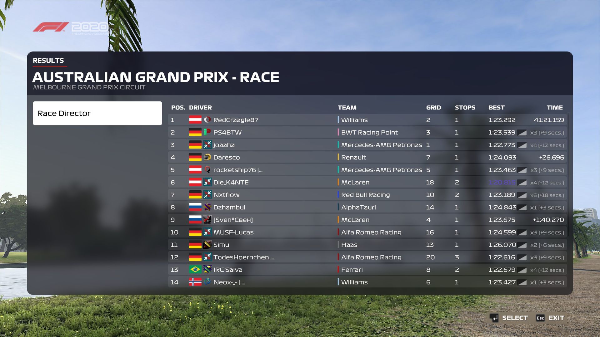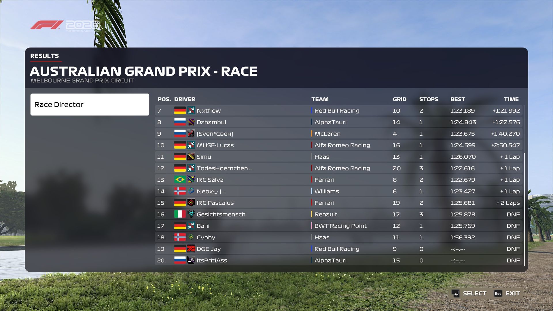 Rennen: Kurzer Text zum Rennen (Vorfälle, besondere Überholmanöver, Gedanken zu Boxenstopps, Undercuts usw.)