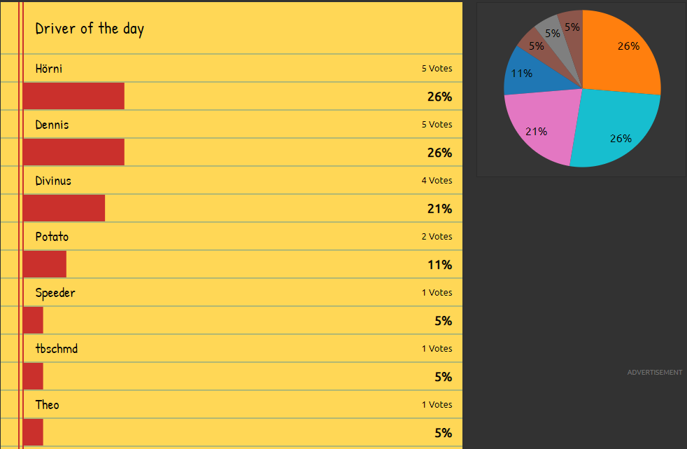 Rennen: Kurzer Text zum Rennen (Vorfälle, besondere Überholmanöver, Gedanken zu Boxenstopps, Undercuts usw.)