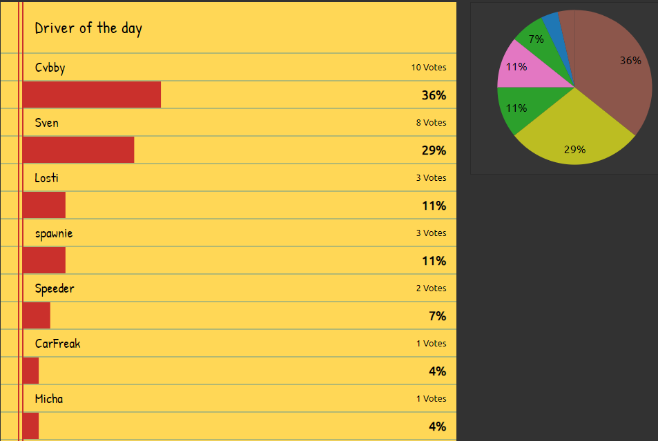 Die Runde war für mich persönlich wirklich gut. Bin schneller gewesen als im Training. Aber P14 war dann doch ein bisschen wenig. Immerhin ein Teamkollegen @GermanPotato geschlagen. :D