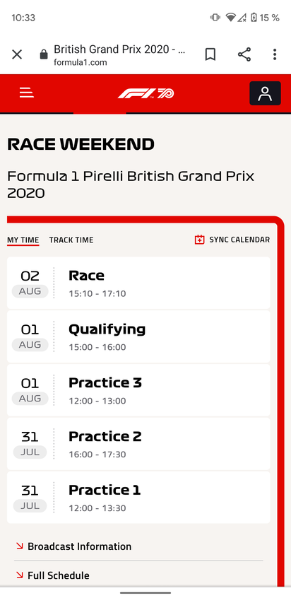 Die Tracktime (Ortszeit) wird mit 14:10 angegeben auf der F1 Seite. Macht bei einer Stunde Unterschied 15:10.