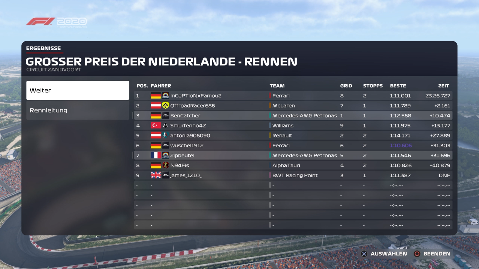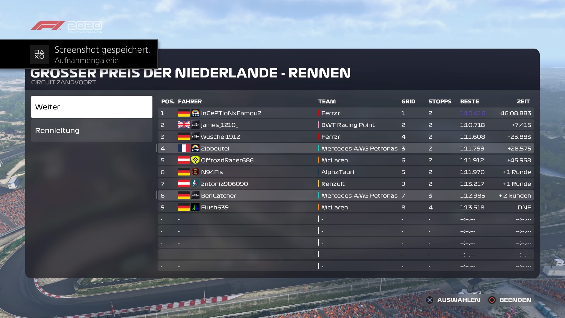 Rennen: Kurzer Text zum Rennen ( Vorfälle, besondere Überholmanöver, Gedanken zu Boxenstops, Undercuts usw.)