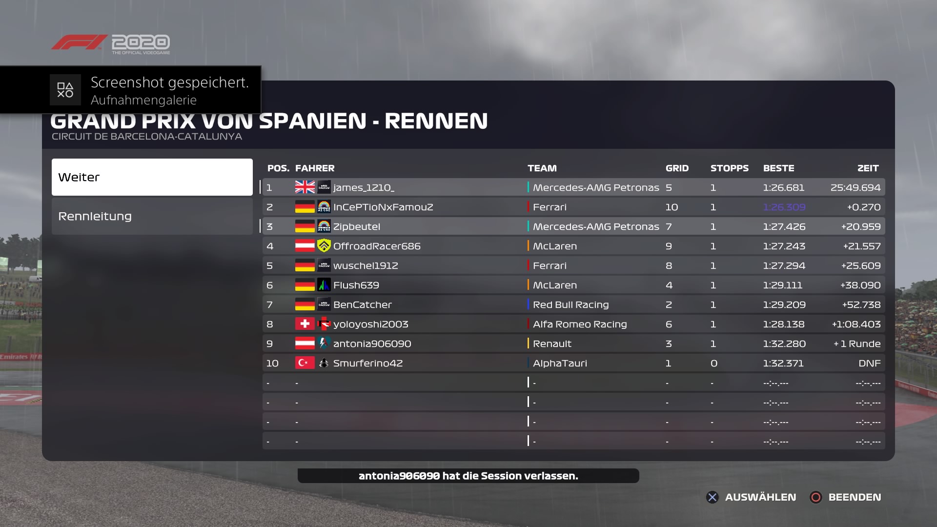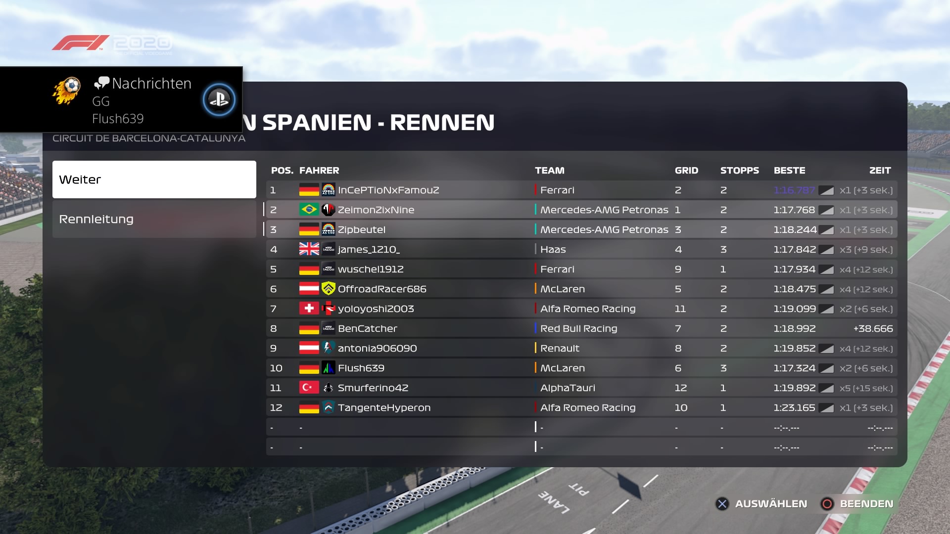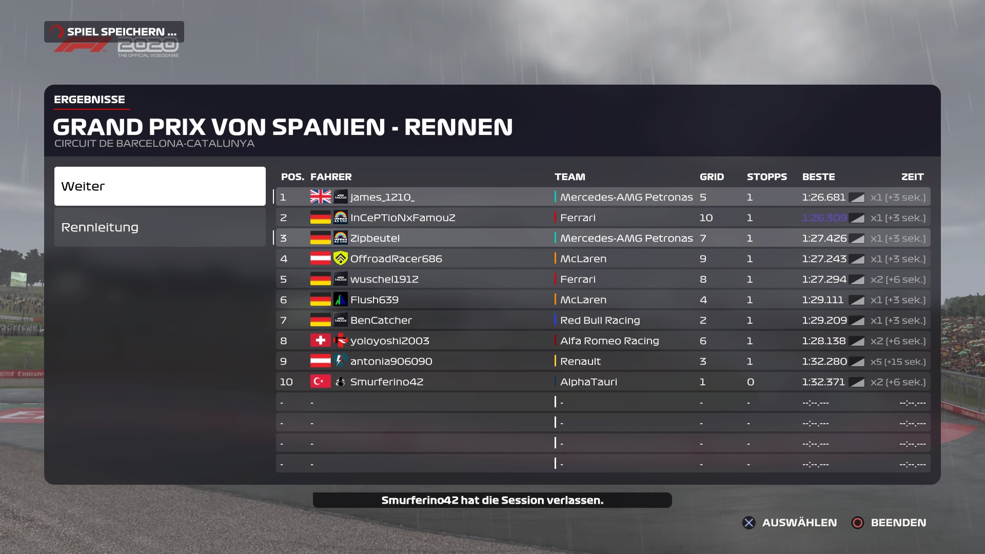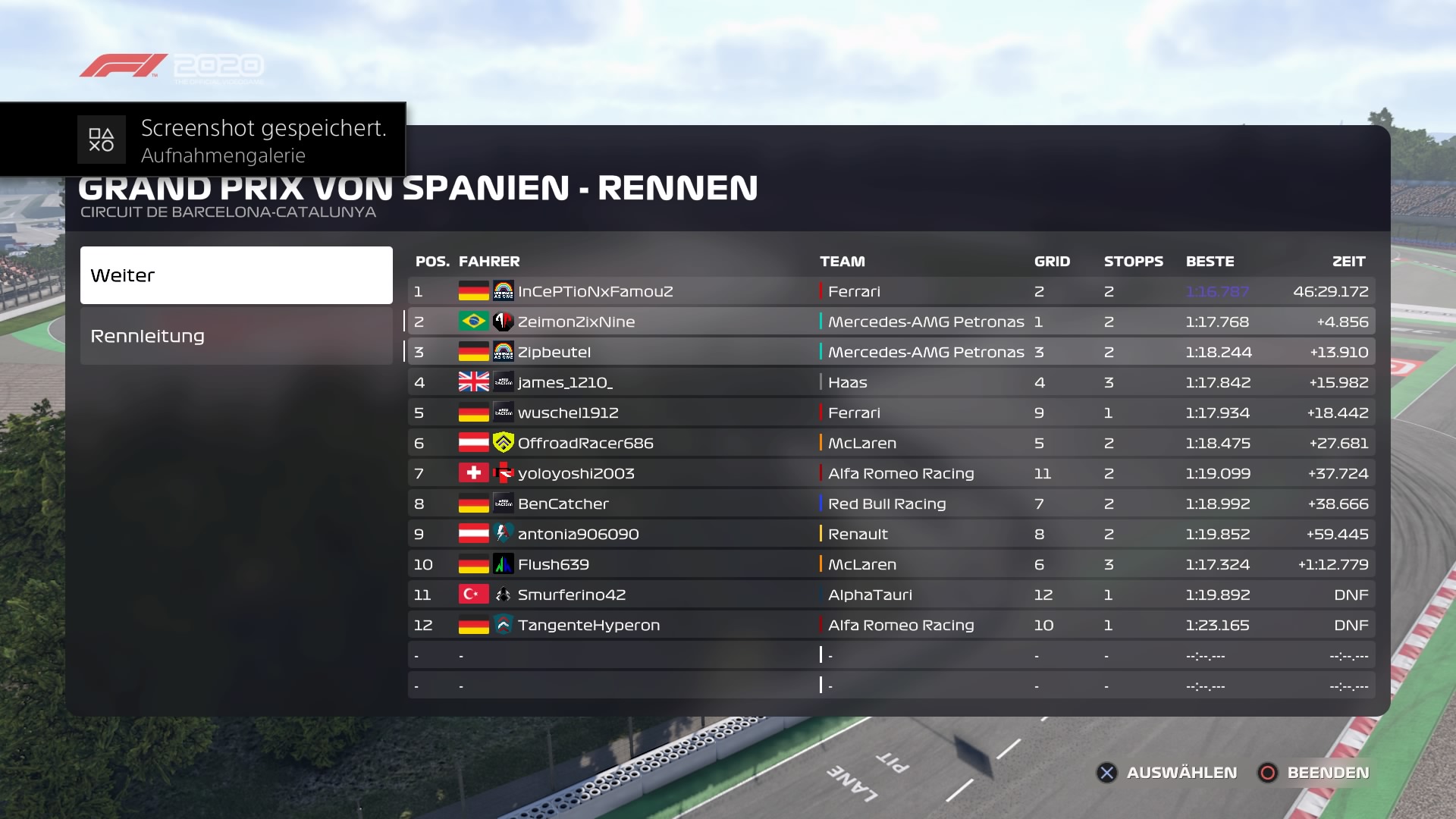 Rennen: Kurzer Text zum Rennen ( Vorfälle, besondere Überholmanöver, Gedanken zu Boxenstops, Undercuts usw.)
